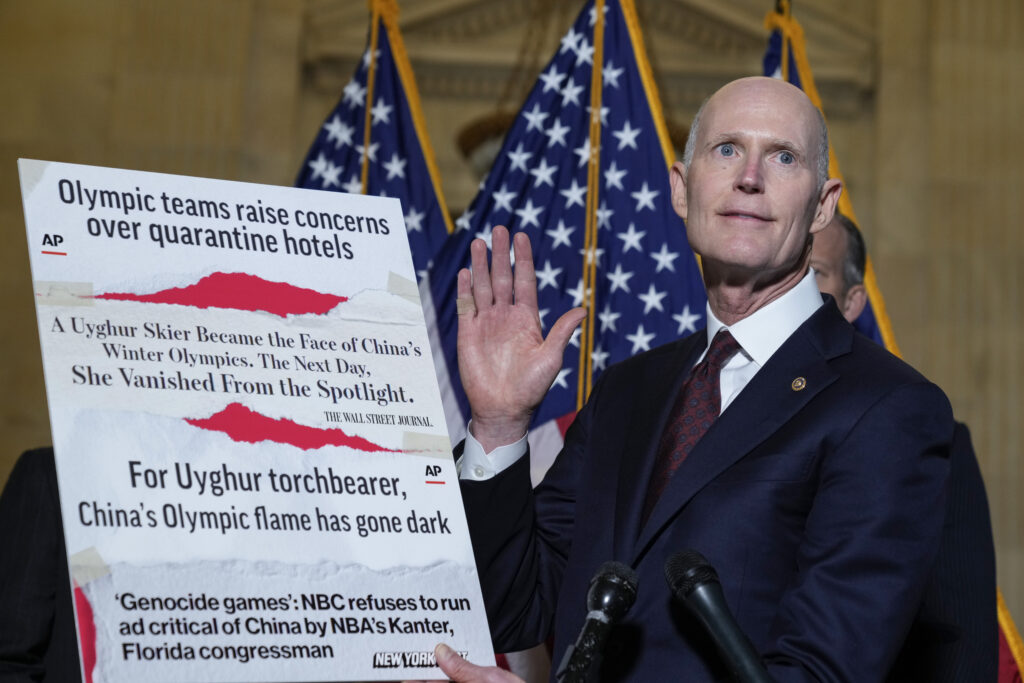 Sen. Rick Scott (R-FL) speaks about the Beijing Winter Olympics following a lunch meeting with Senate Republicans on Capitol Hill on February 8, 2022 in Washington, DC. (Photo by Drew Angerer/Getty Images)