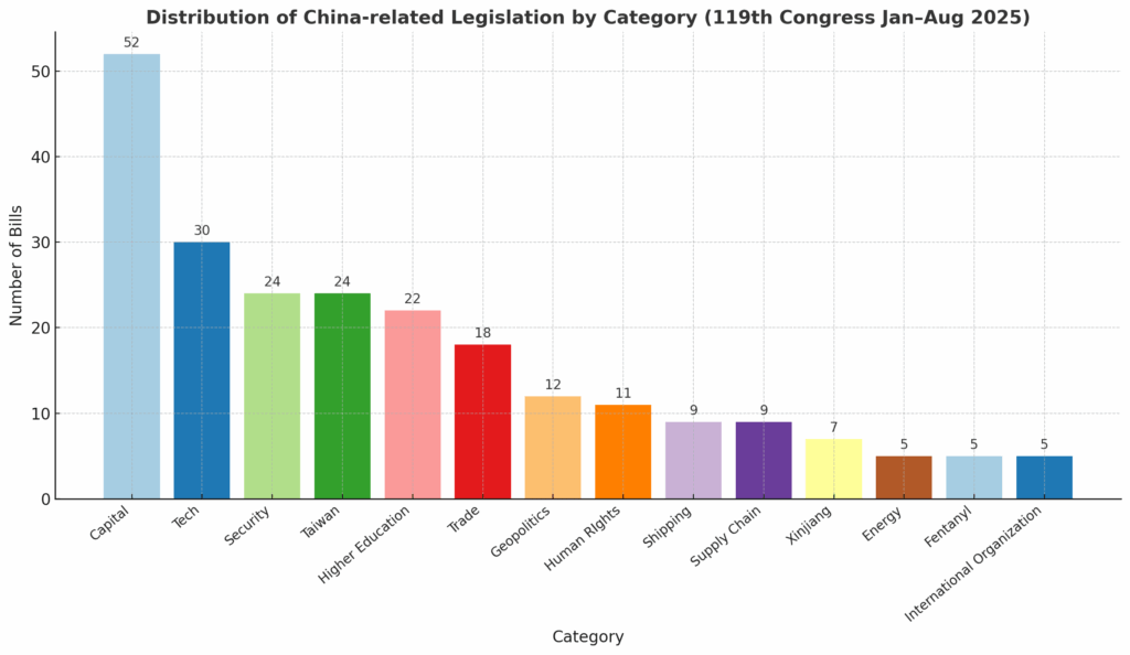 Figure 1: Distribution of China-related Legislation by Category (119th Congress Jan-Aug 2025)